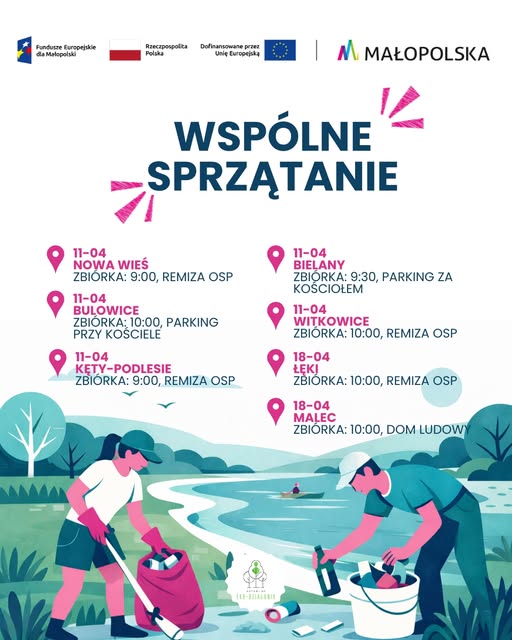 Projekt „Gotowi do EKO-Działania” (nr projektu: FEMP.08.04-IP.01-0487/25), współfinansowany ze środków Funduszu Sprawiedliwej Transformacji, realizowany w ramach programu Fundusze Europejskie dla Małopolski 2021-2027, Priorytet 8 Fundusze europejskie dla sprawiedliwej transformacji Małopolski Zachodniej, Działanie 8.4 Inicjatywy lokalne na rzecz transformacji.