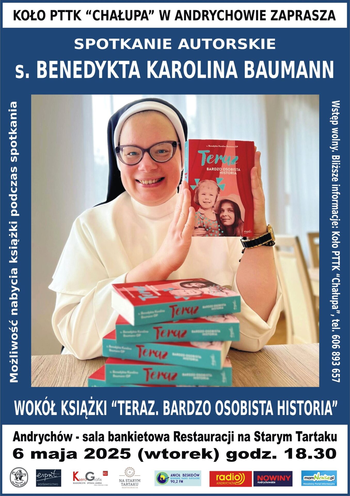 Spotkanie poprowadzi Miriam Arbter-Korczyńska – redaktorka Radia Anioł Beskidów. Rozmowa toczyć się będzie wokół książki „Teraz. Bardzo osobista historia”, która ukazała się niedawno nakładem Wydawnictwa Esprit.