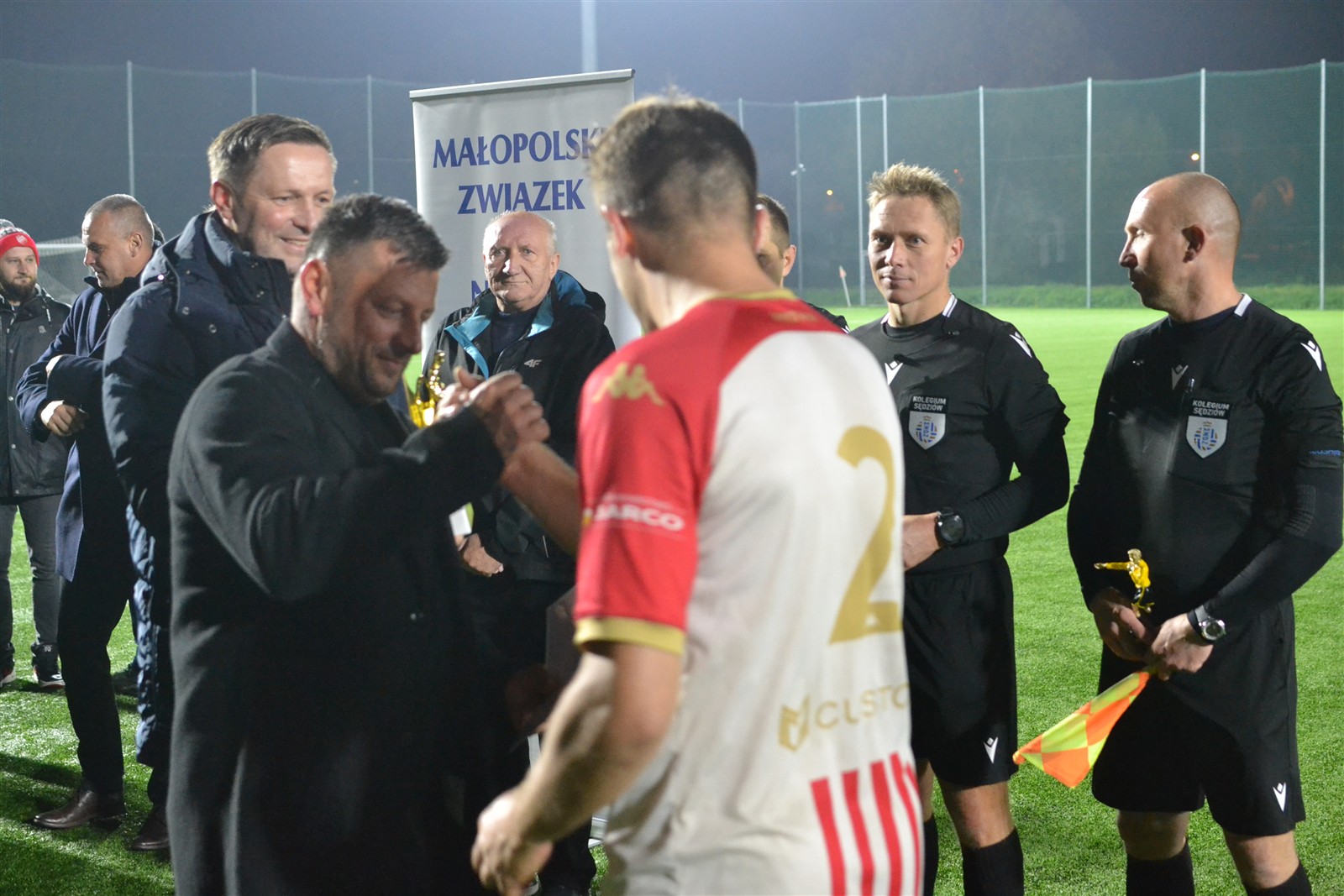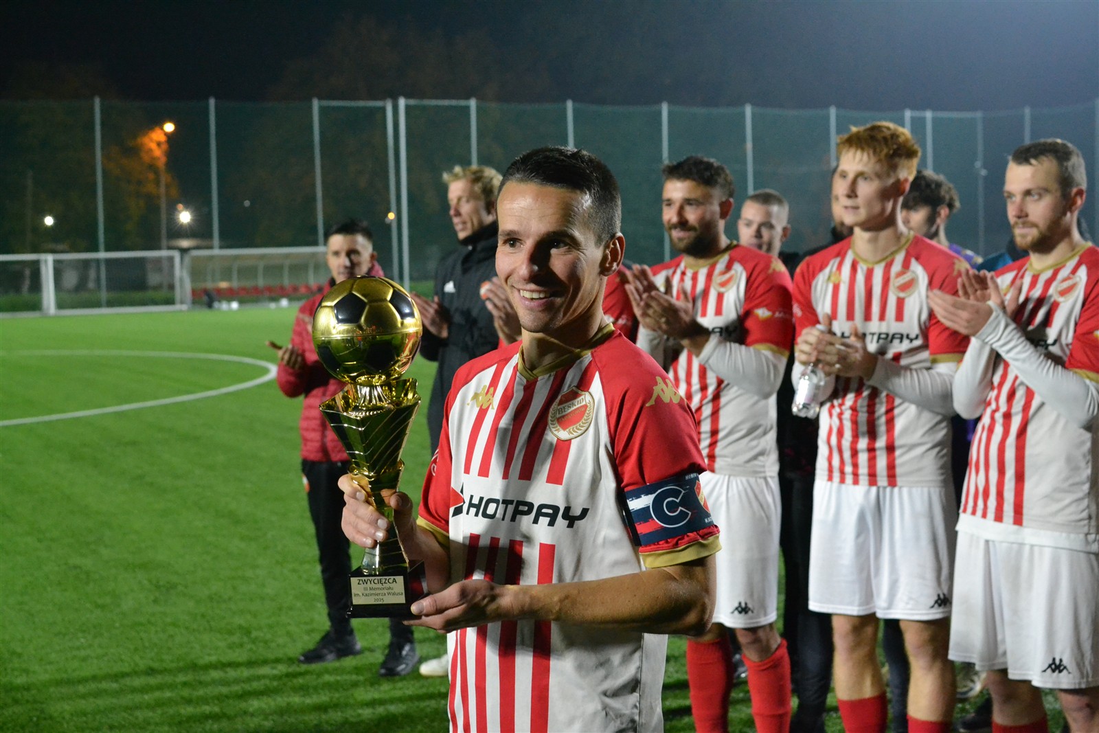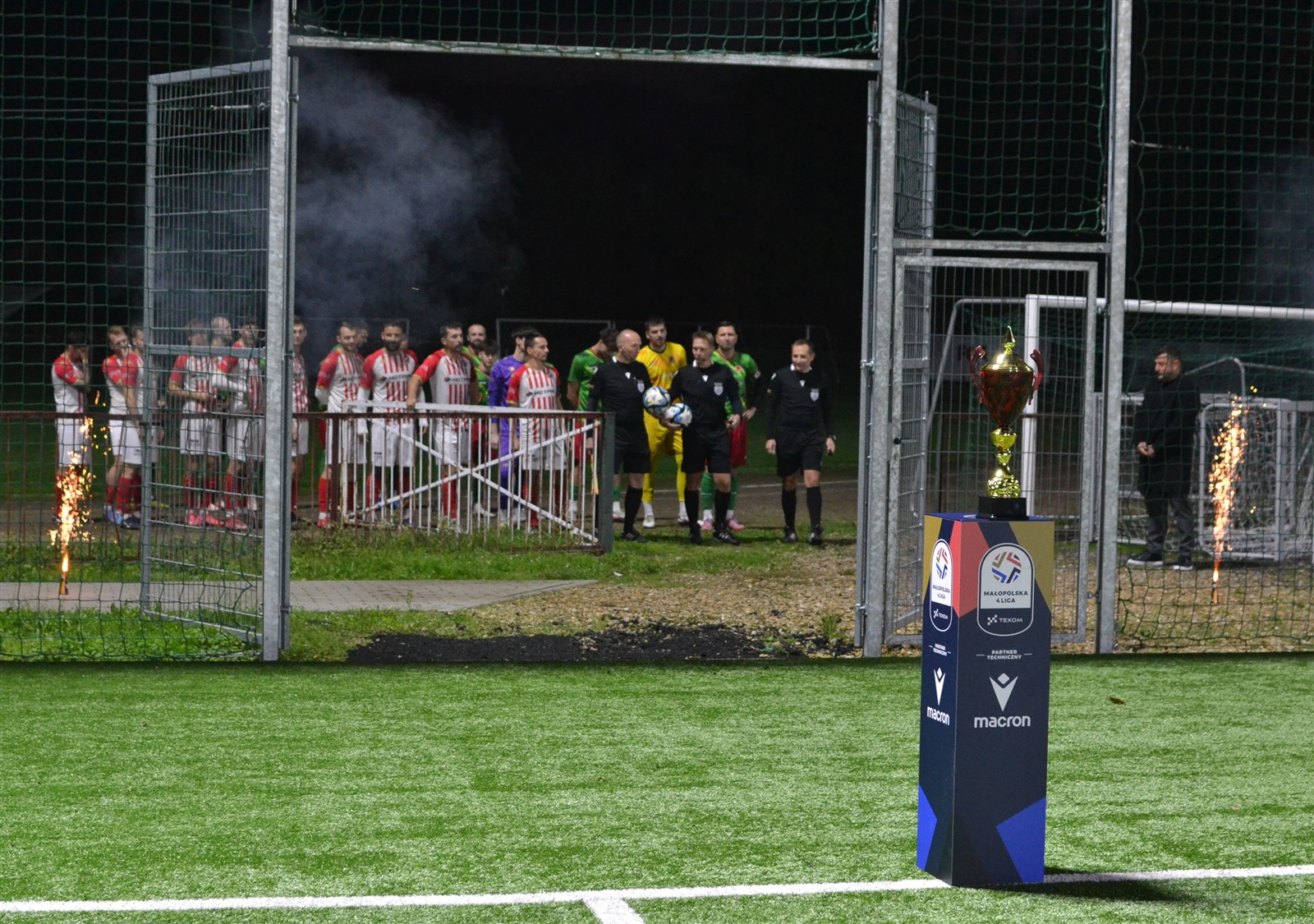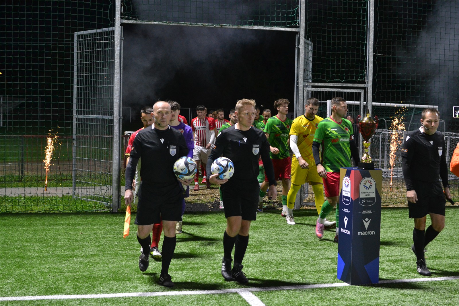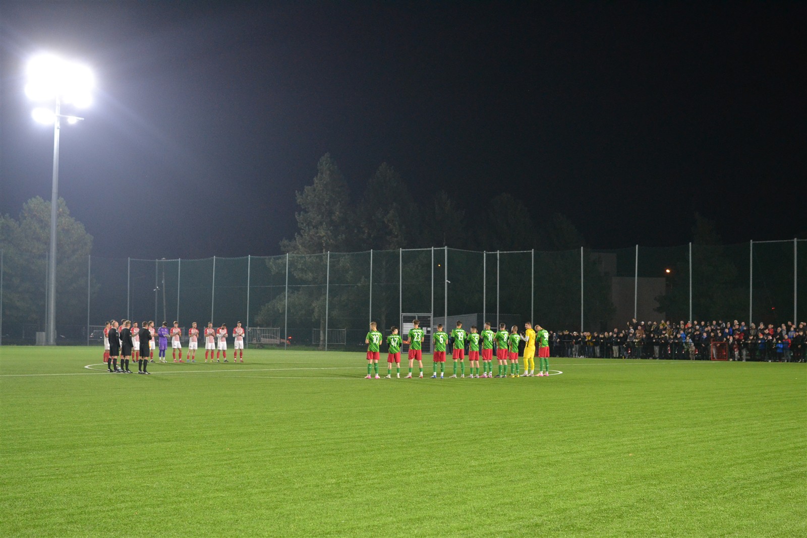 Pierwotnie aktualny lider IV ligi miał zmierzyć się z wiceliderem tego samego szczebla rozgrywkowego już tydzień temu w Andrychowie. Uznano wówczas, że boisko Beskidu nie jest w najlepszym stanie i zdecydowano się przenieść mecz na dziś. Formalnie gospodarzem wciąż pozostali andrychowianie, ale do konfrontacji doszło w Wadowicach na sztucznej murawie i do tego w blasku reflektorów, bo pierwszy gwizdek rozbrzmiał o 18.30, a zatem już po zmroku. Jednak zanim gra się rozpoczęła zawodnicy obu ekip oraz kibice gromkimi brawami uczcili pamięć Kazimierza Walusa.