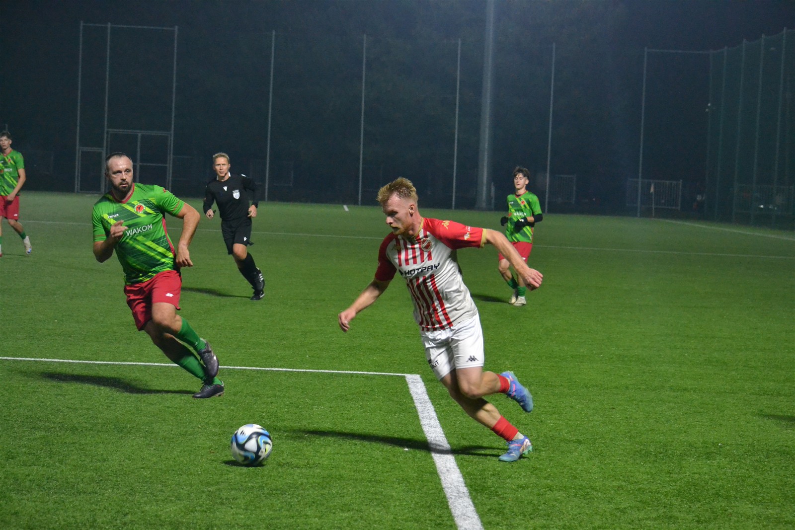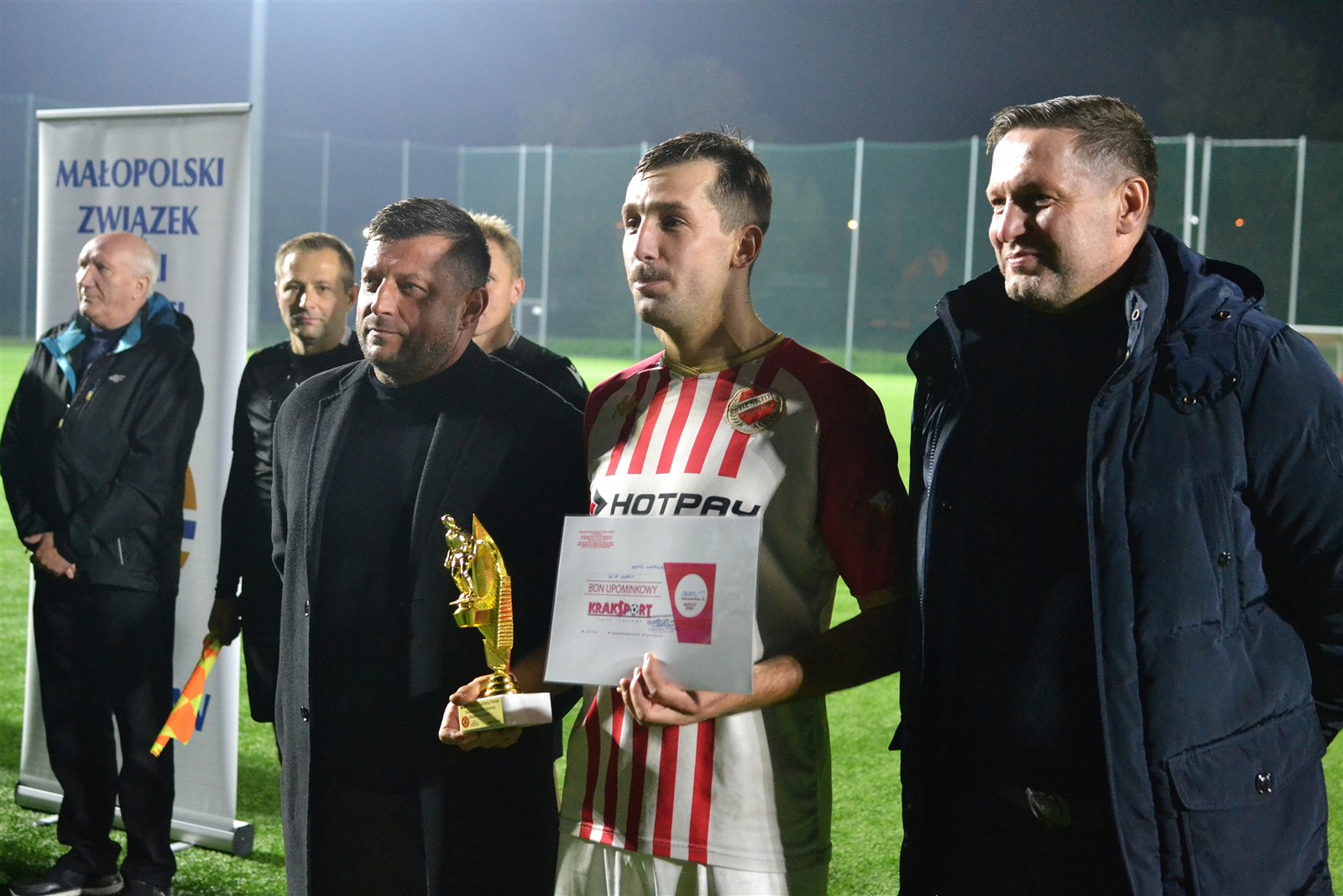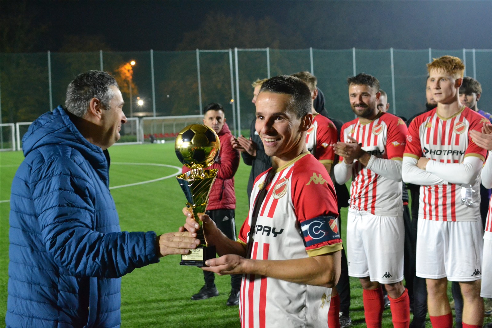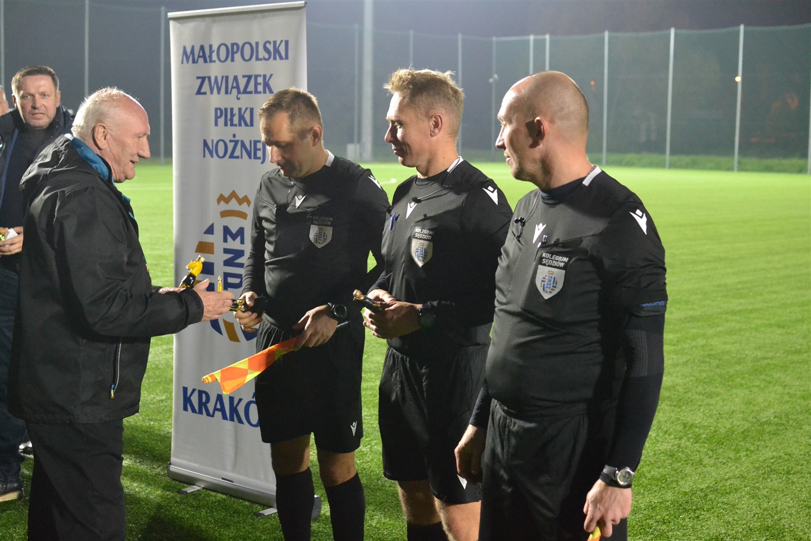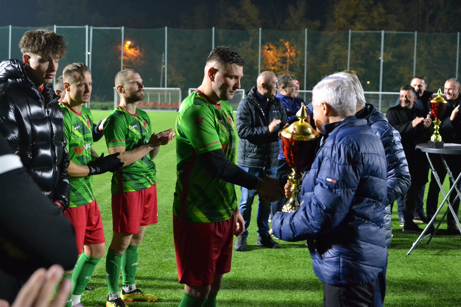 Pierwotnie aktualny lider IV ligi miał zmierzyć się z wiceliderem tego samego szczebla rozgrywkowego już tydzień temu w Andrychowie. Uznano wówczas, że boisko Beskidu nie jest w najlepszym stanie i zdecydowano się przenieść mecz na dziś. Formalnie gospodarzem wciąż pozostali andrychowianie, ale do konfrontacji doszło w Wadowicach na sztucznej murawie i do tego w blasku reflektorów, bo pierwszy gwizdek rozbrzmiał o 18.30, a zatem już po zmroku. Jednak zanim gra się rozpoczęła zawodnicy obu ekip oraz kibice gromkimi brawami uczcili pamięć Kazimierza Walusa.