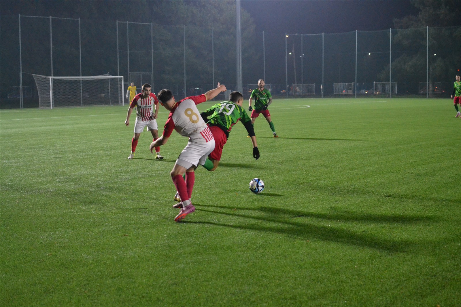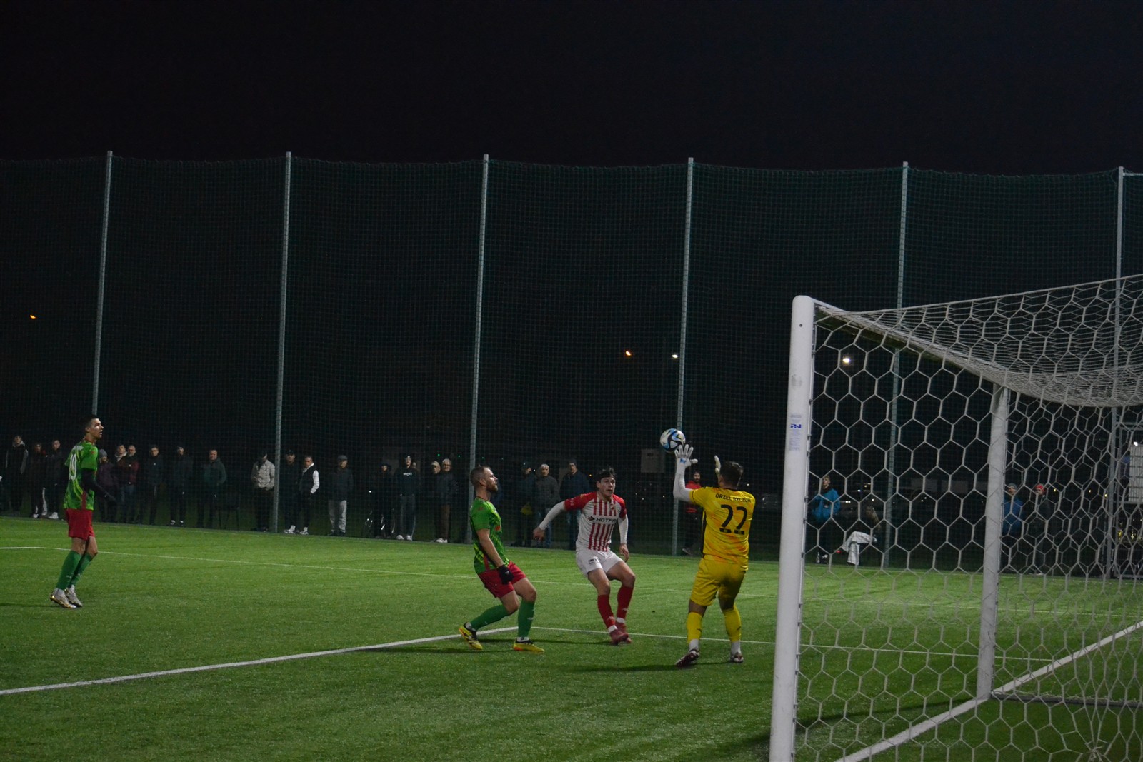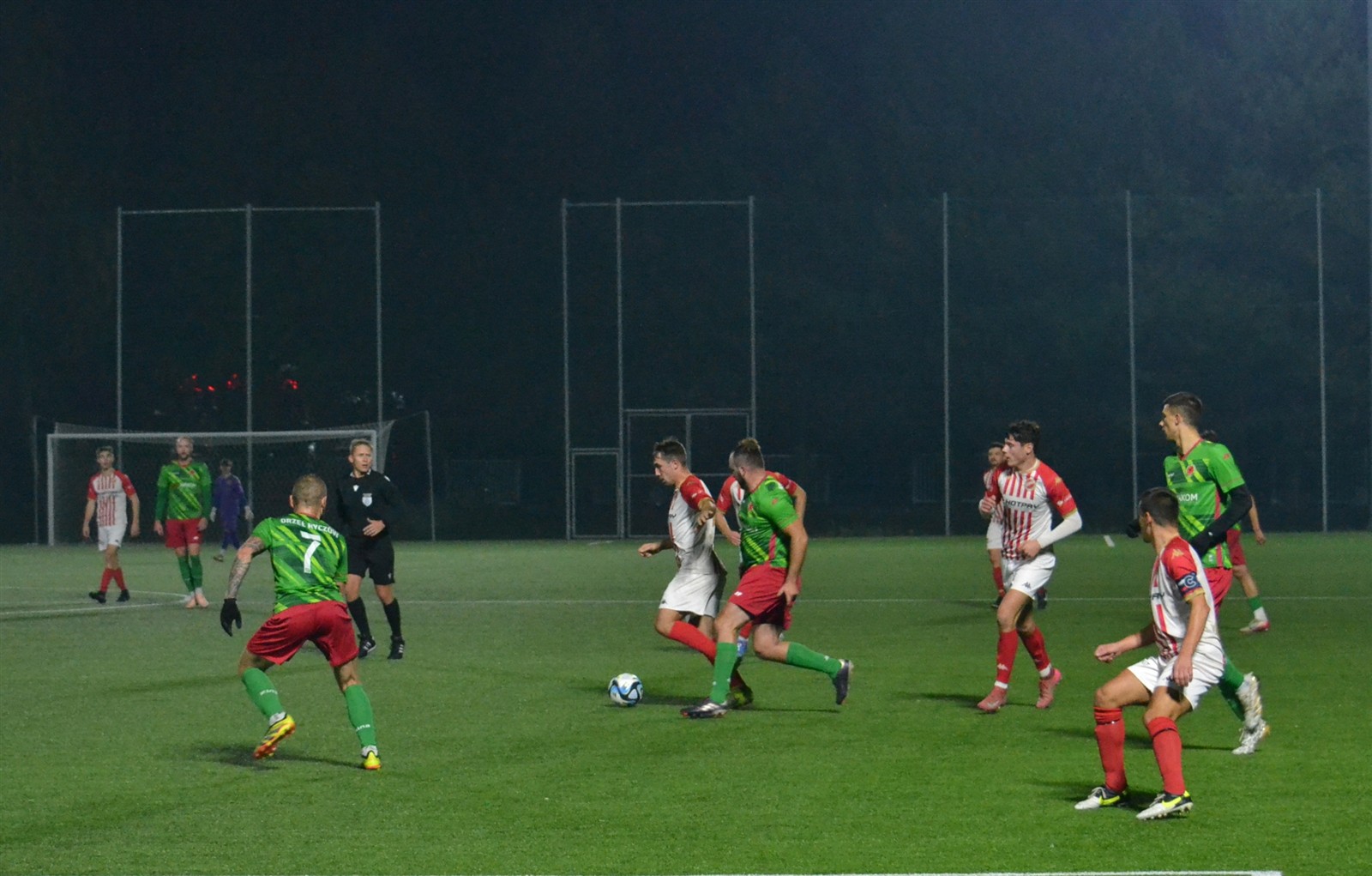 W 35 min. w pole karne wdarł się przebojem Dawid Hałat. Uryga co prawda trącił piłkę nogą, ale następnie z impetem wpadł w rywala i sędzia wskazał na „wapno”. Z taką decyzją długo nie mogli pogodzić się zarówno zawodnicy Orła, jak i trener. – Bardzo kontrowersyjna decyzja. Jego były bramkarz nie zgadzam się z nią. Bramkarz przecież nie mógł zatrzymać się w miejscu po interwencji – przedstawiał po spotkaniu swoje racje szkoleniowiec. Tak, czy owak rzut karny został podyktowany, a na gola zamienił go Dawid Nagi.