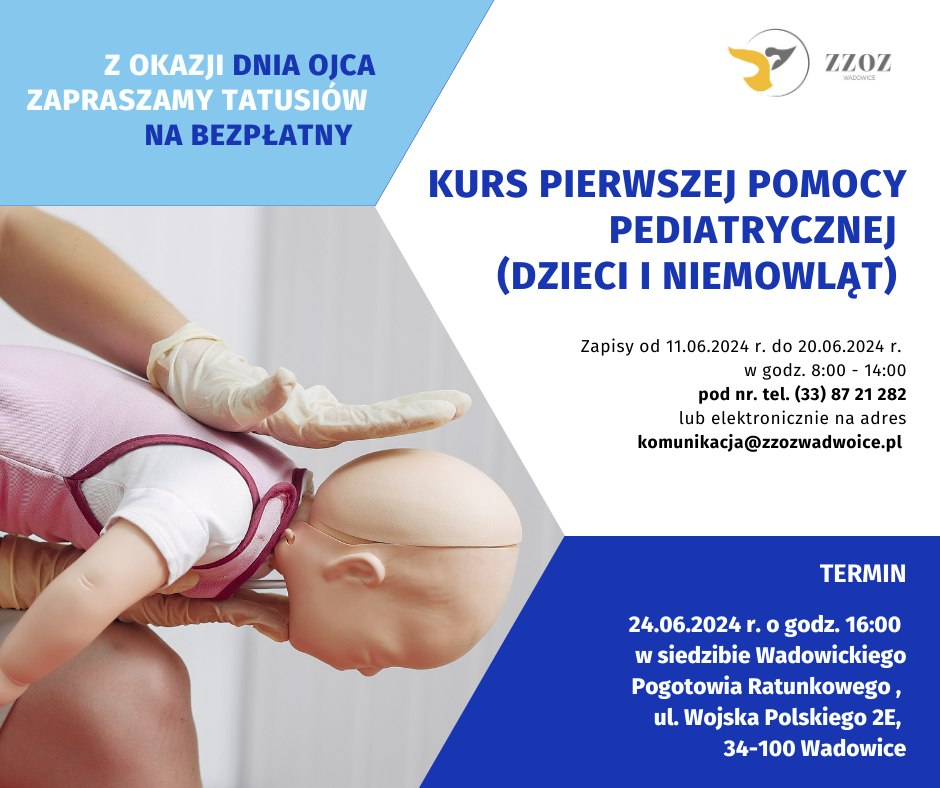Szkolenie odbędzie się 24.06.2024 roku o godz. 16:00 w siedzibie Wadowickiego Pogotowia Ratunkowego w Wadowicach, przy ul. Wojska Polskiego II E (na 2 piętrze). Poprowadzi je nasz ratownik, który w szkole rodzenia „Małe Szczęście” uczy rodziców, jak udzielać pomocy noworodkom.