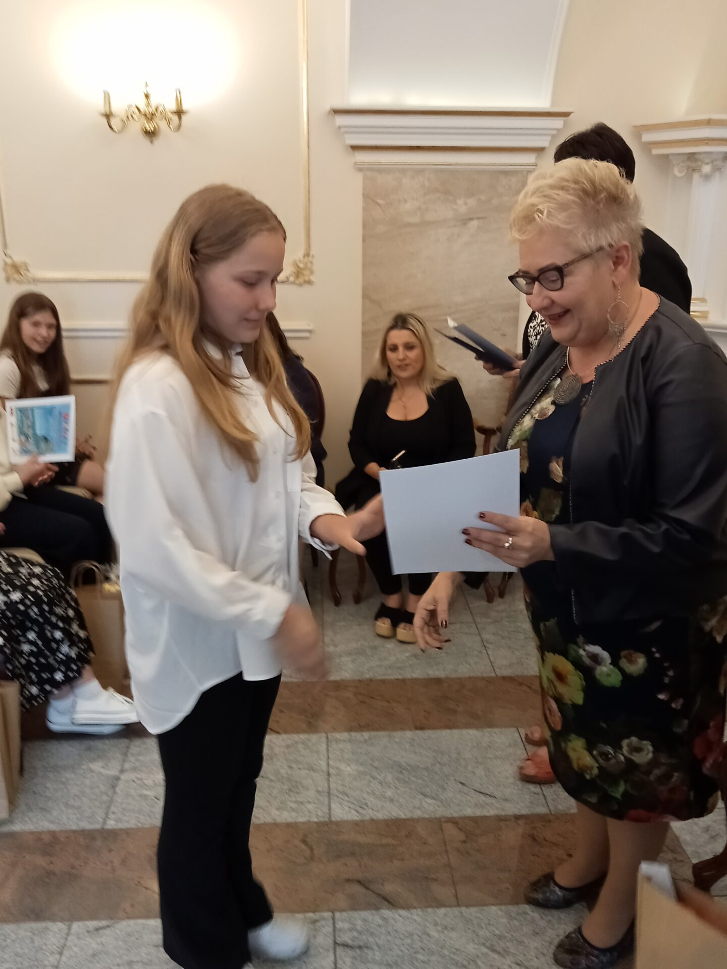Decyzje te uroczyście ogłosiła w sali Urzędu Stanu Cywilnego burmistrz Beata Smolec. Ona też wraz ze swoim zastępcą Aleksandrem Kasperkiem, Sekretarz Gminy Agnieszką Perończyk-Adamek oraz z Sylwią Błasiak, Dyrektor Miejskiej Biblioteki Publicznej wręczyła upominki laureatom oraz wszystkim wyróżnionym. Były gratulacje, oklaski i wspólne fotografie.