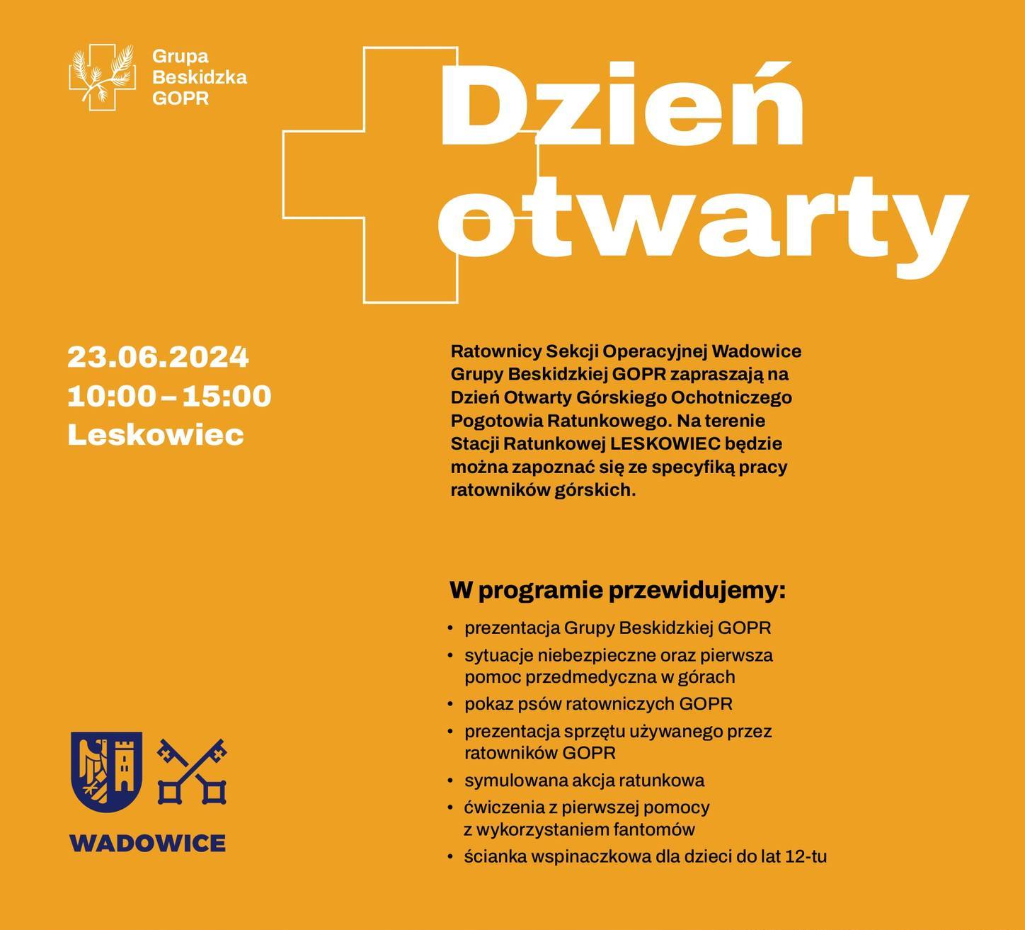 Zapraszamy – Niedziela – 23 czerwca – godz. 10:00-15:00 – Teren Stacji Ratunkowej Leskowiec w Beskidzie Małym!