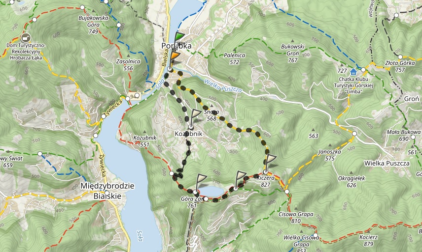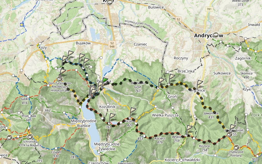 - Będzie 5 punktów kontrolnych (Potrójna, Przełęcz Kocierska, Kiczera, Żar, Hrobacza Łąka)