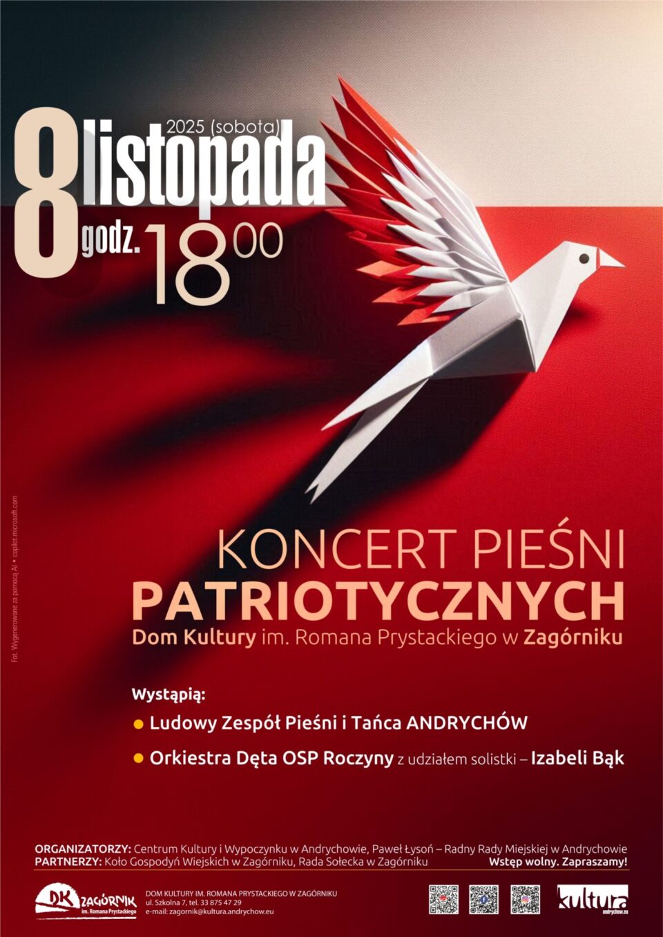 Podczas koncertu zaproszeni artyści wykonają liczne polskie pieśni patriotyczne, które – choć niezwykle wartościowe – bywają dziś już rzadko przypominane. Spotkanie to stanowi doskonałą okazję do ożywienia pamięci o tych utworach i wzmocnienia poczucia wspólnoty narodowej.