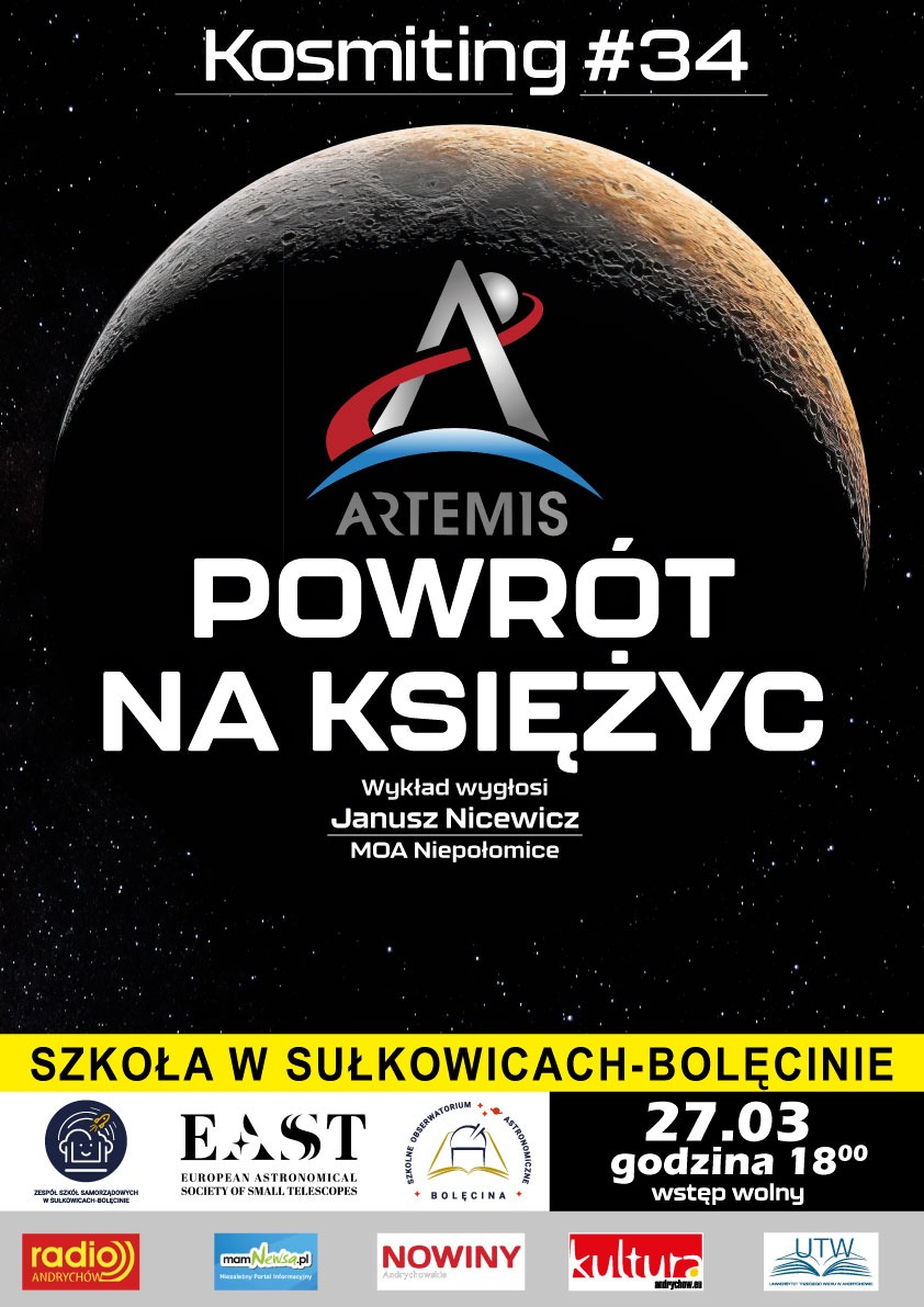 27 marca, o godz. 18:00 na sali widowiskowej szkoły w Sułkowicach-Bolęcinie odbędzie się niezwykle ciekawy wykład pt. „Artemis, powrót na księżyc".