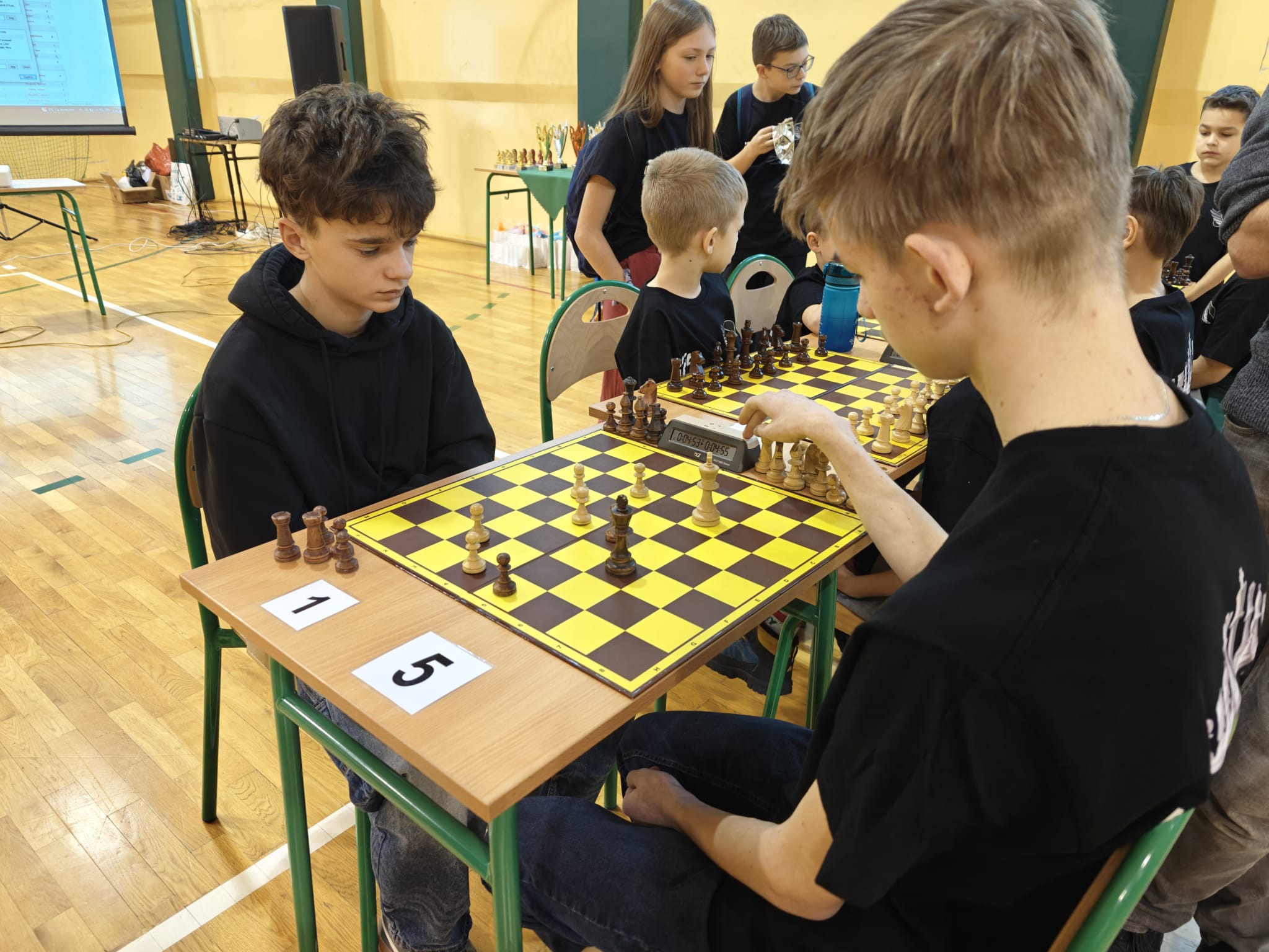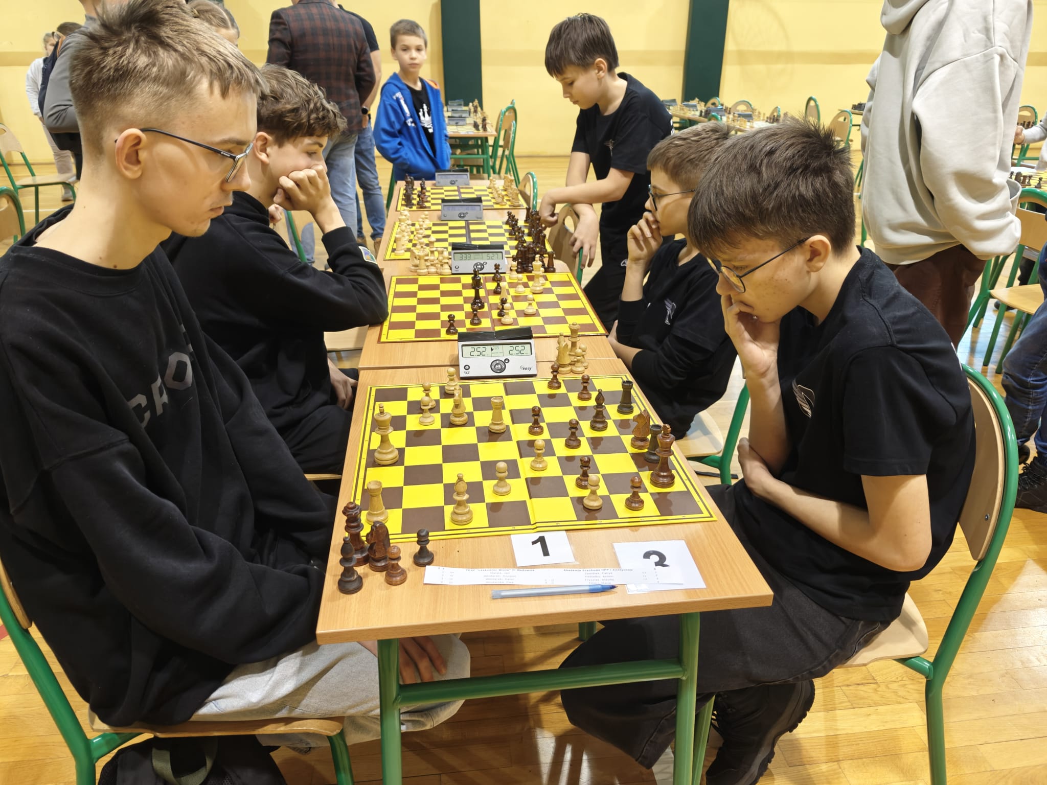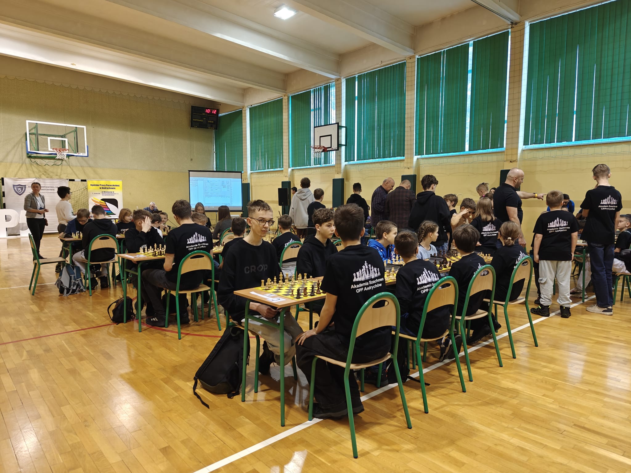 W sali gimnastycznej andrychowskiej „Piątki” do szachownic zasiadło ponad 60 młodych adeptów królowej gier, którzy pod czujnym okiem głównego sędziego zawodów Piotra Janasa i sędziego pomocniczego Piotra Góralczyka toczyli ze sobą zawzięte pojedynki.