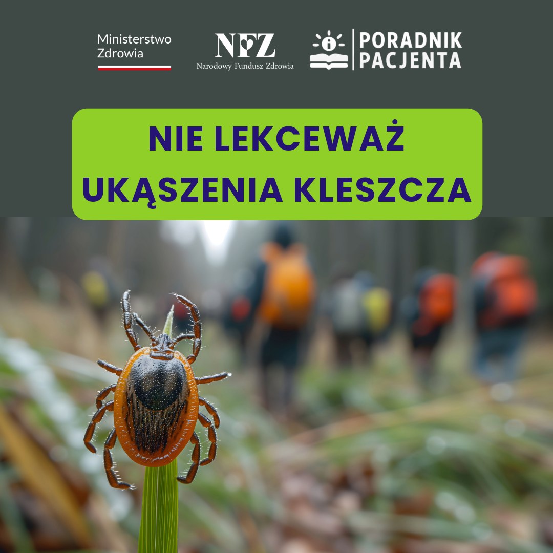 Przeczytaj Poradnik Pacjenta „Nie lekceważ ukąszenia kleszcza„.