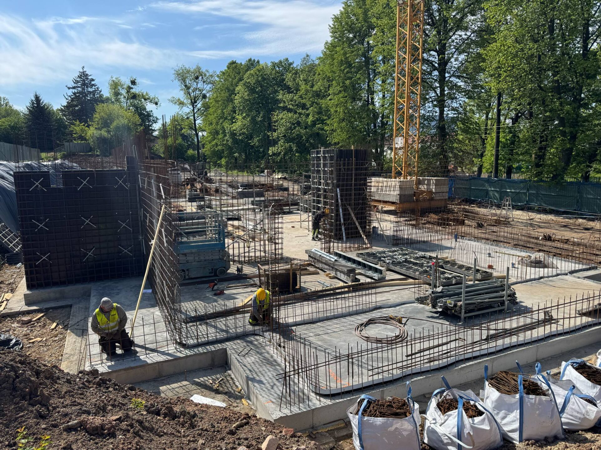 Dzięki uprzejmości wizytującego inwestycję Wiceburmistrza Aleksandra Kasperka, mamy zdjęcia tego, co aktualnie dzieje się na budowie. Przypominamy, że obiekt został zasłonięty, a przedstawiciele wykonawcy pilnują, żeby nikt postronny nie wchodził na jego teren.