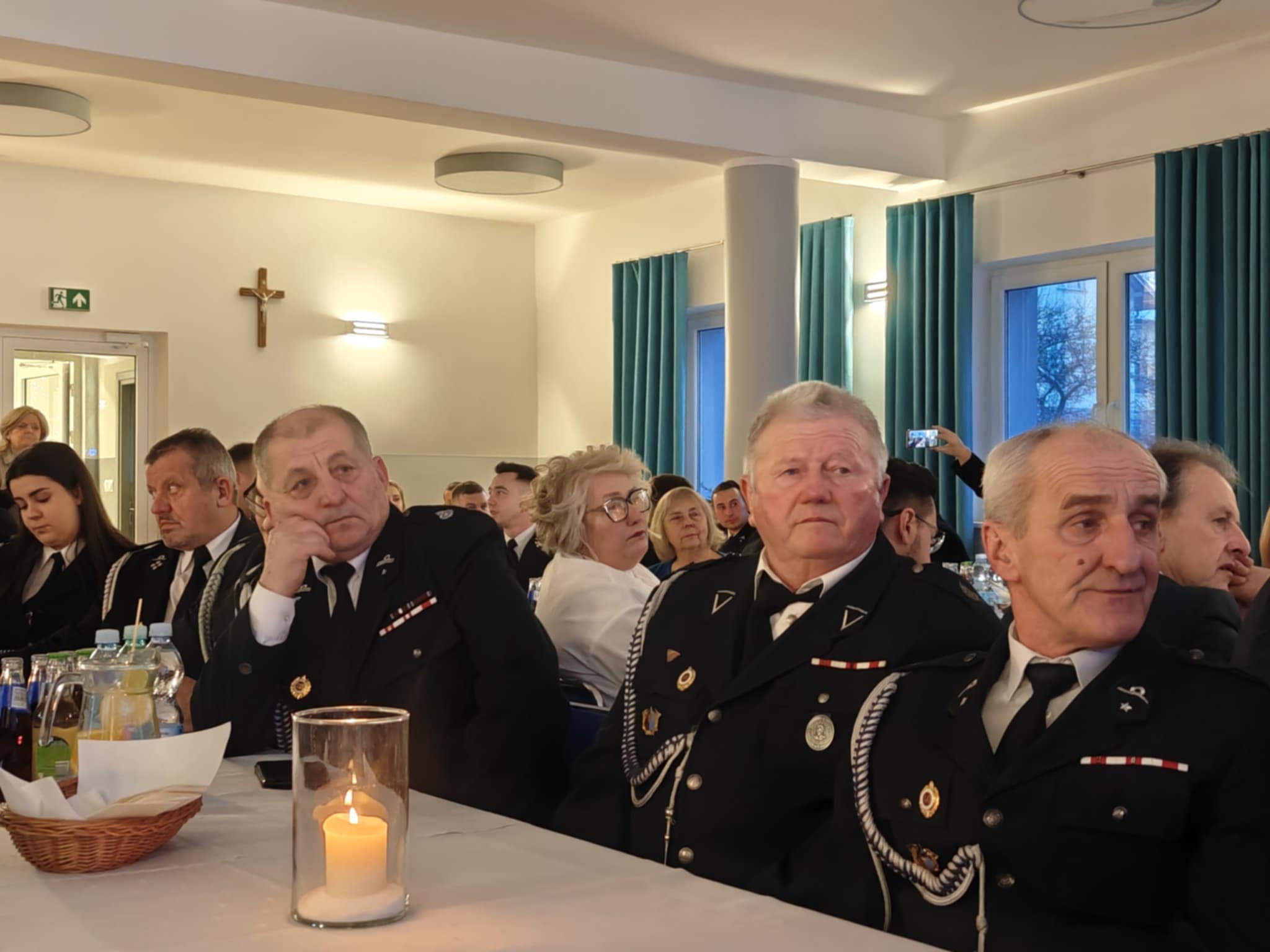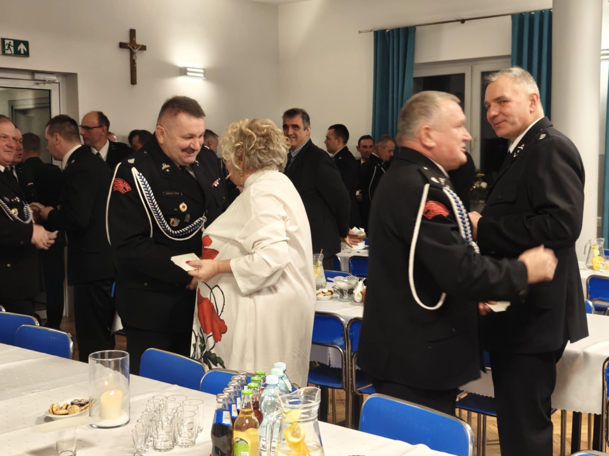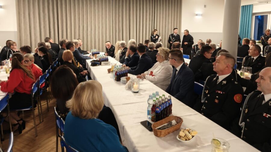 Następnie strażacy oraz goście przeszli do składania sobie nawzajem noworocznych życzeń i łamania się poświęconym wcześniej przez ks. Skrzypca opłatkiem.