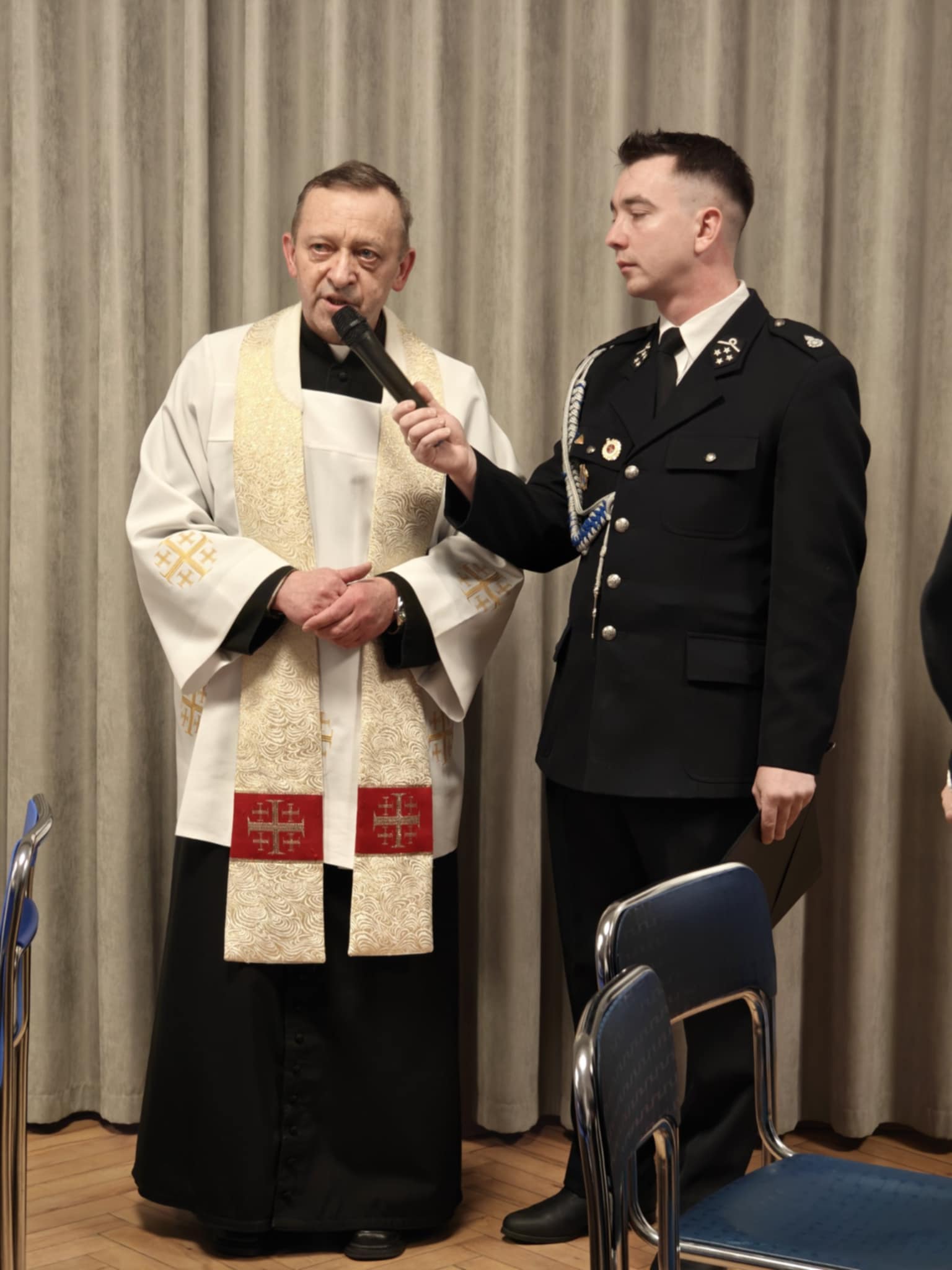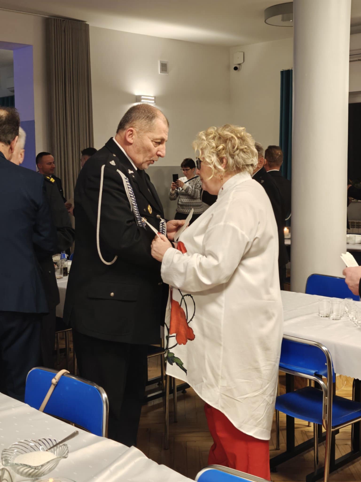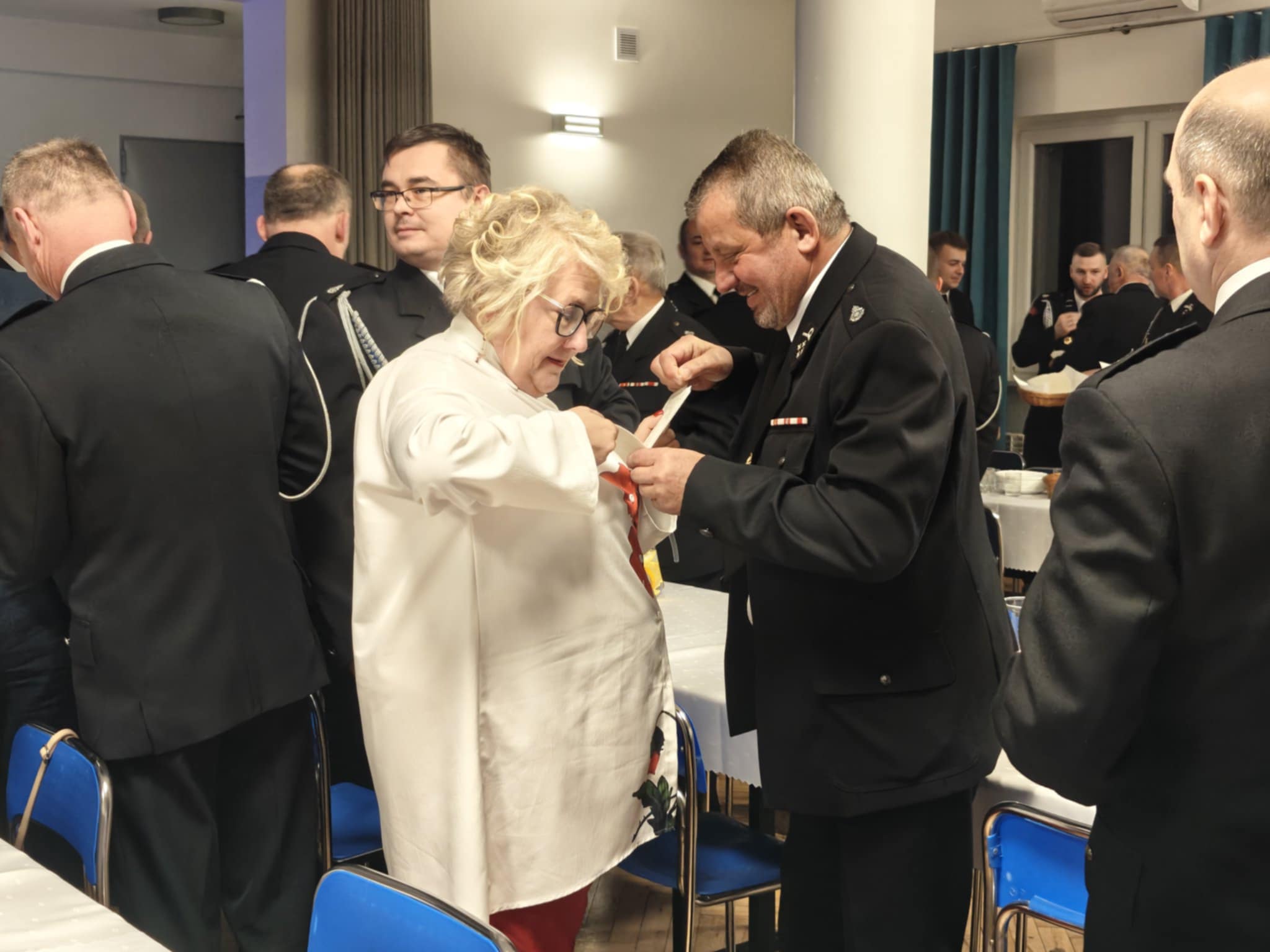 Następnie strażacy oraz goście przeszli do składania sobie nawzajem noworocznych życzeń i łamania się poświęconym wcześniej przez ks. Skrzypca opłatkiem.