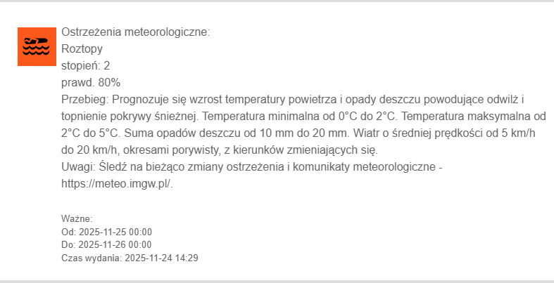 Uwagi: Śledź na bieżąco zmiany ostrzeżenia i komunikaty meteorologiczne – https://meteo.imgw.pl/.