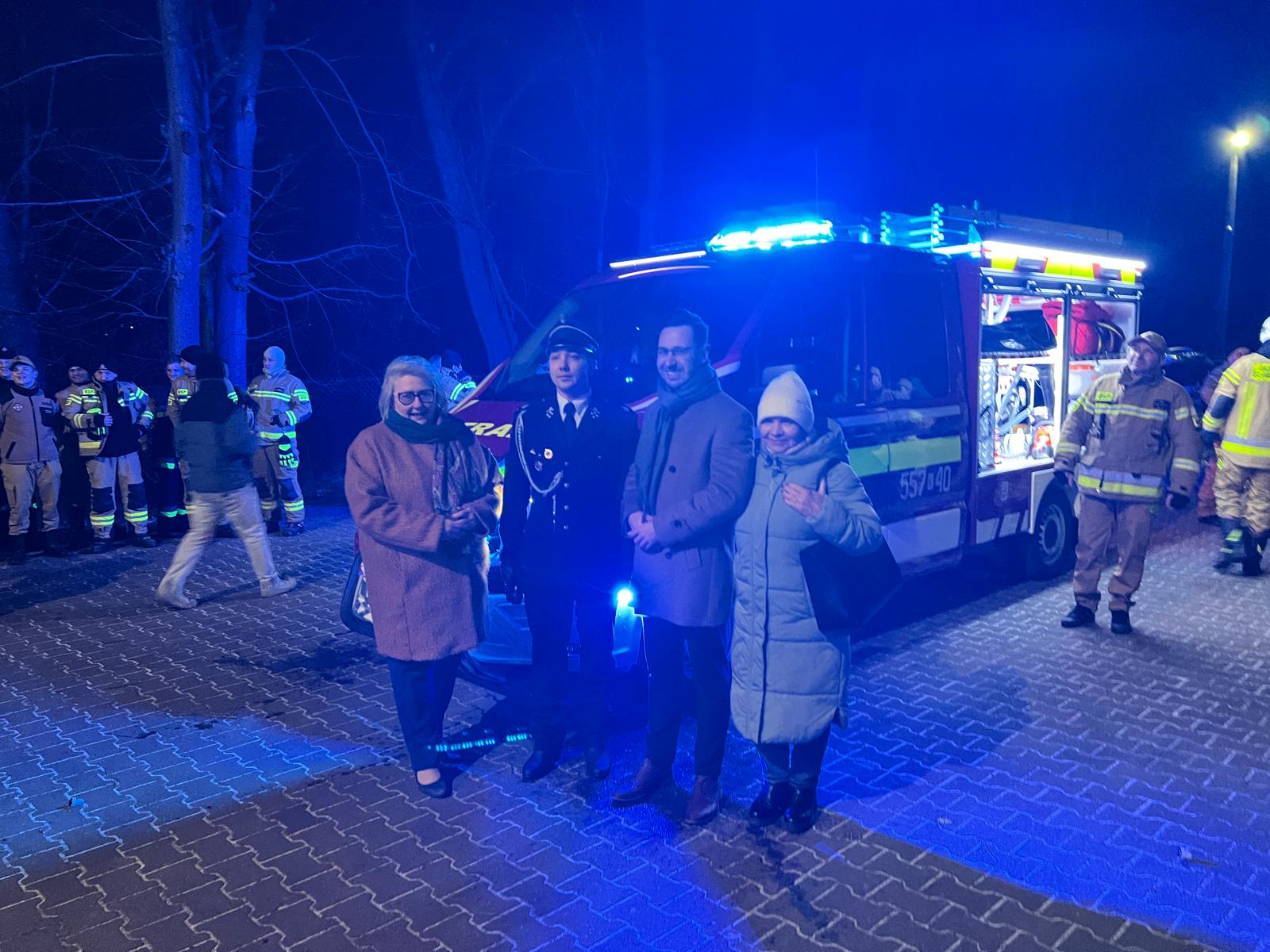 W uroczystości przekazania pojazdu wzięli udział przedstawiciele wymienionych instytucji: burmistrz Beata Smolec, wicestarosta Wojciech Polak i poseł Filip Kaczyński.