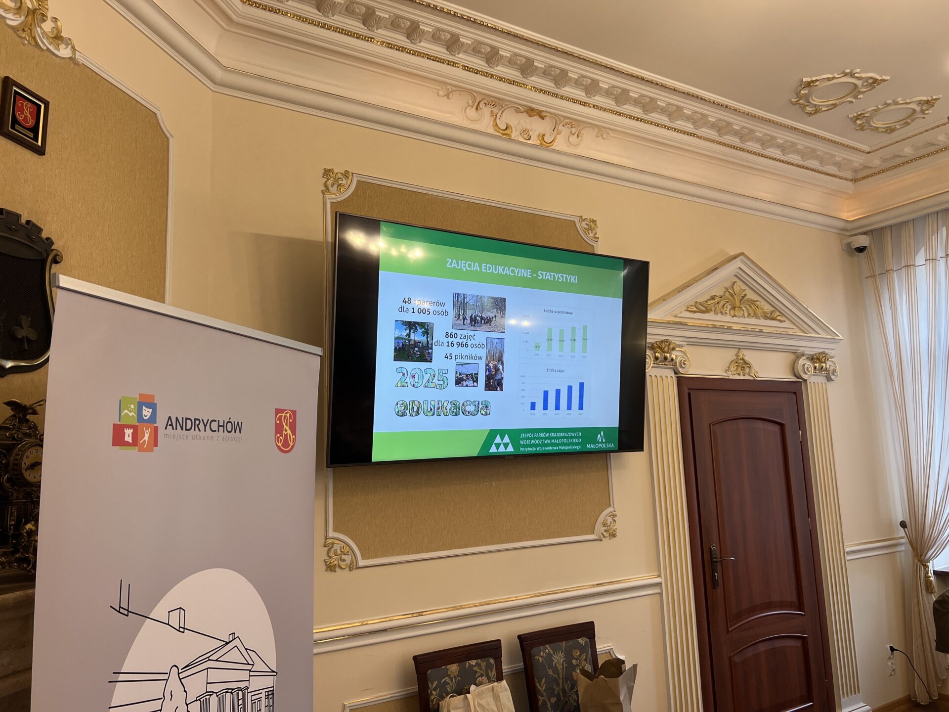 Dyrektor Zespołu Parków Krajobrazowych Województwa Małopolskiego, Pan Marcin Guzik, oraz Zastępca Dyrektora, Pan Marek Kroczek, przedstawili podsumowanie działań Zespołu w 2025 roku, wskazując zarówno sukcesy, jak i wyzwania związane z ochroną Beskidu Małego.