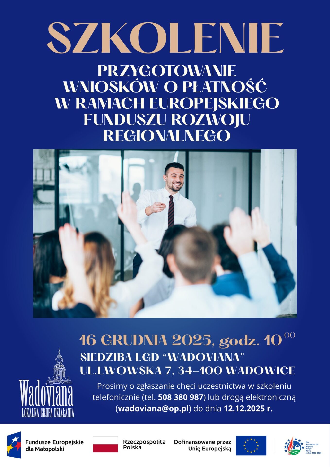 Chęć udziału w szkoleniu można zgłaszać do 12 grudnia 2025 r. telefonicznie pod numerem 508 380 987 lub mailowo na adres wadoviana@op.pl