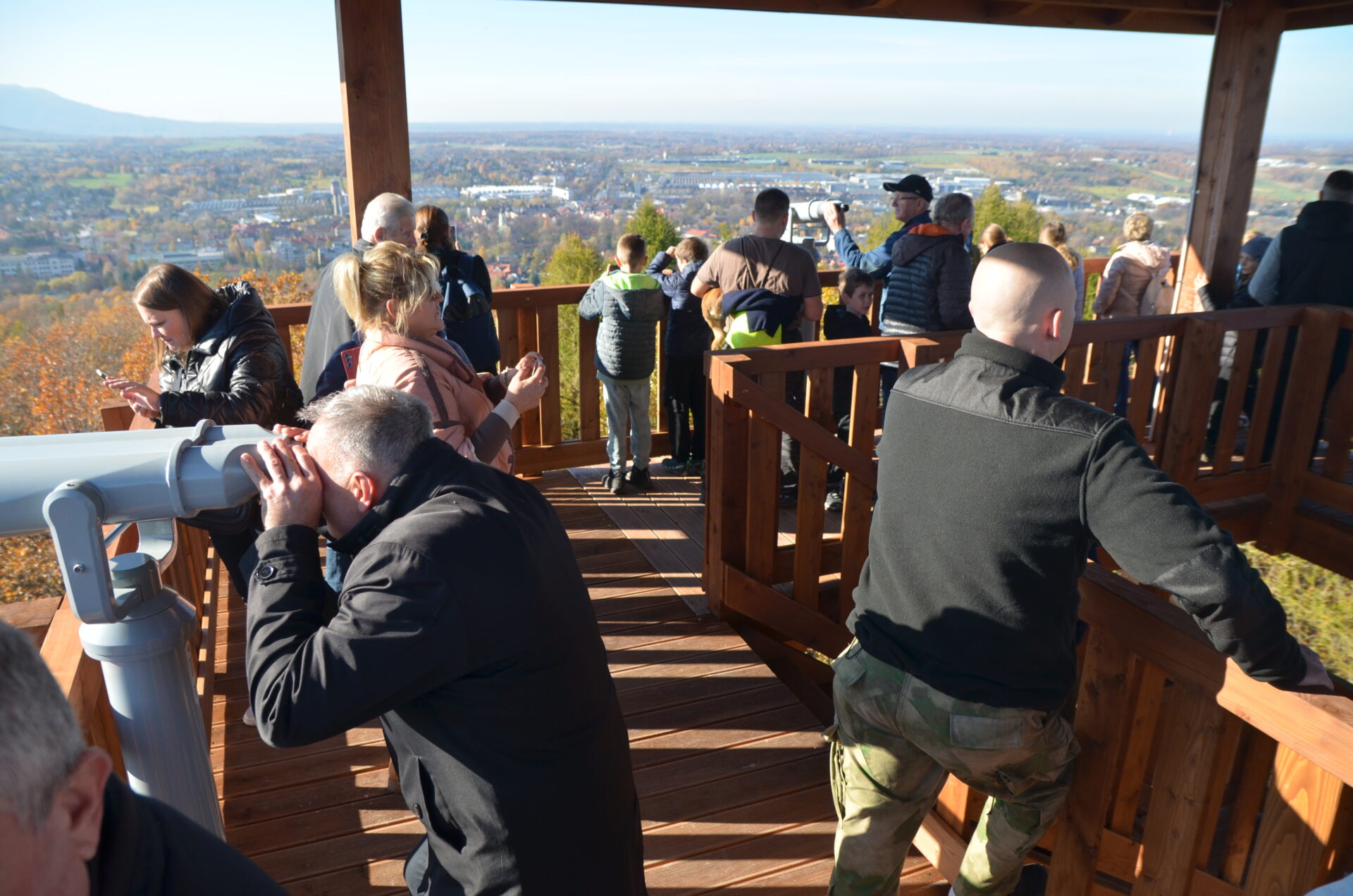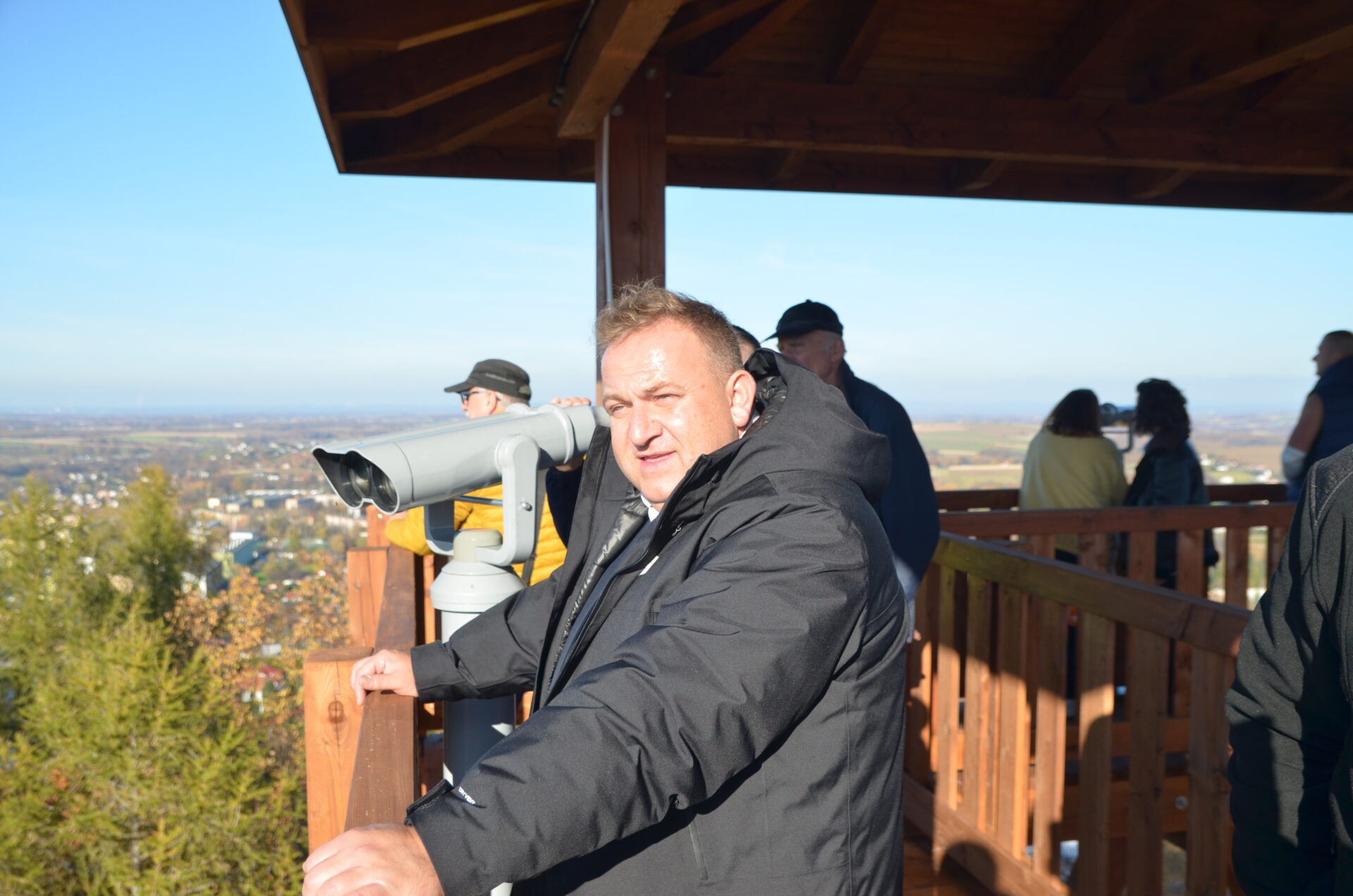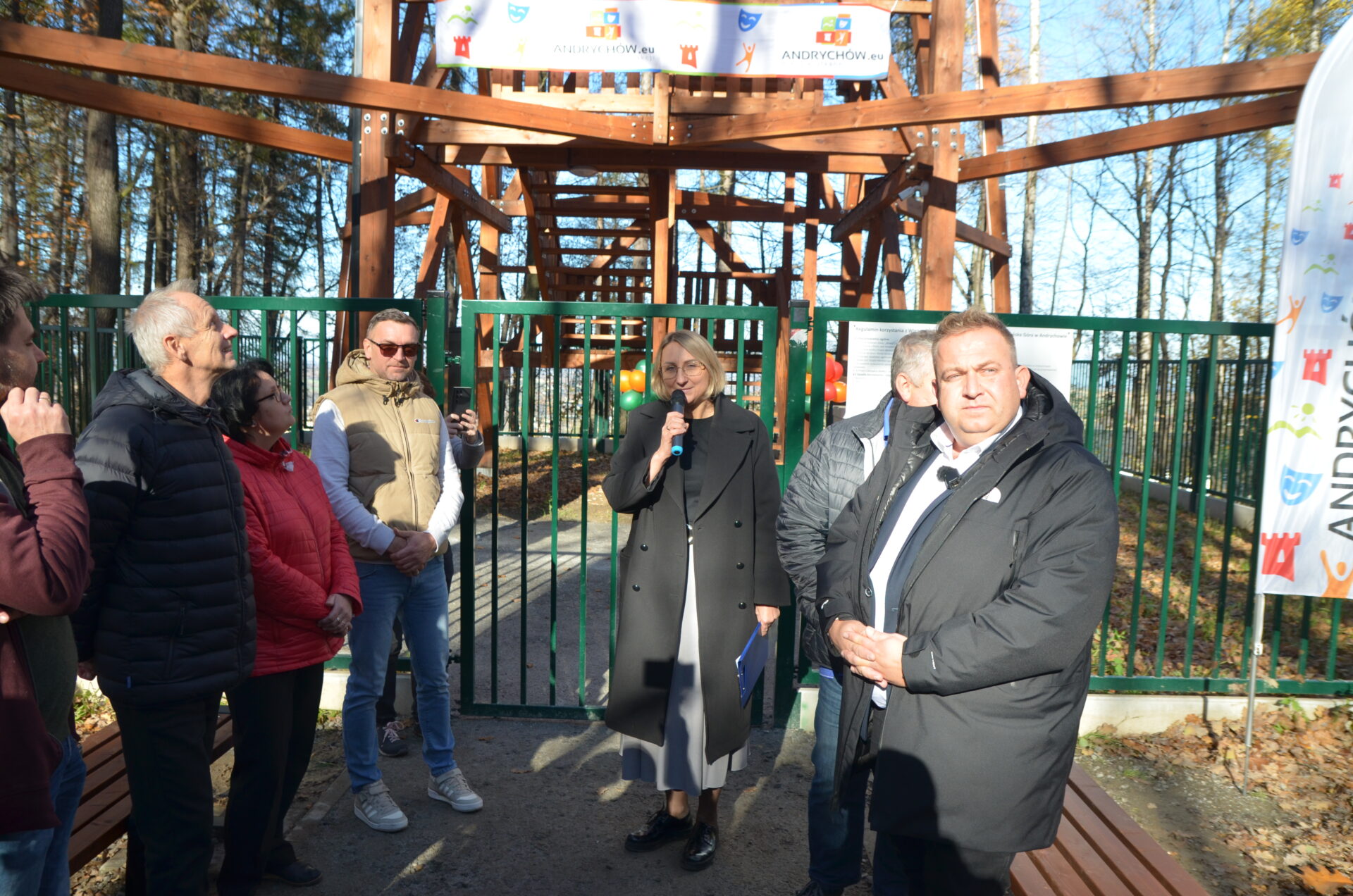 Uroczyste otwarcie tej nietuzinkowej konstrukcji, mierzącej 32,5 metra, stało się okazją dla wszystkich zgromadzonych na szczycie Pańskiej Góry, by samodzielnie wejść na platformę widokową i podziwiać piękną panoramę Beskidu Małego, Andrychowa oraz okolicznych i nieco bardziej odległych miejscowości, np. Zator, Jaworzno czy Brzeszcze. Trzeba przyznać, że pogoda tego dnia okazała się wyjątkowo łaskawa i zapewniła doskonałą widoczność we wszystkich kierunkach. Chętnych do wyjścia nie brakowało i przez moment utworzyła się na dole niewielka kolejka, gdyż na obiekcie może przebywać jednorazowo maksymalnie 30 osób.