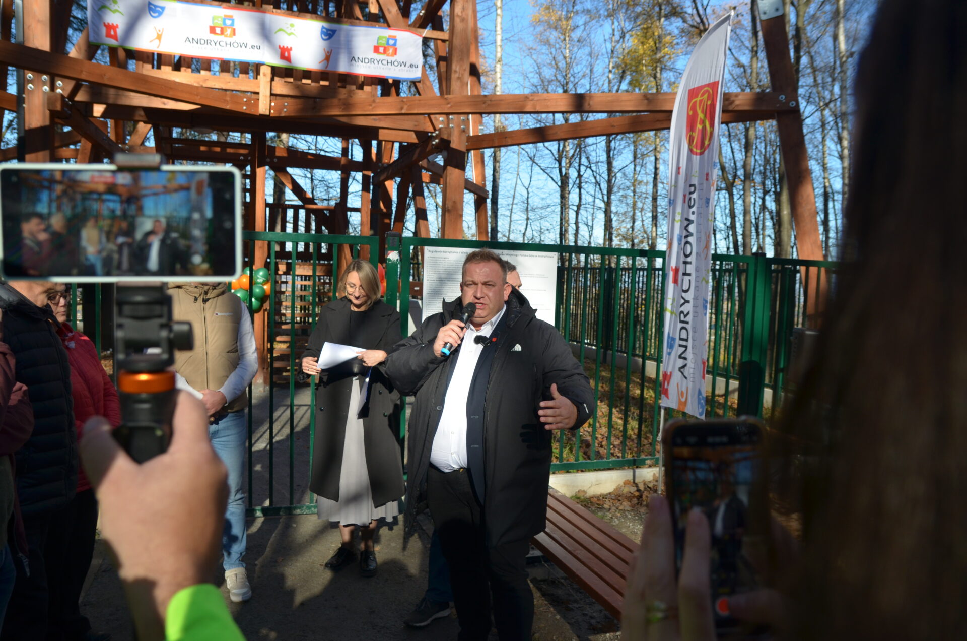 W ceremonii otwarcia wzięli udział m.in. Wicestarosta Wadowicki Wojciech Polak, Wiceburmistrz Andrychowa Aleksander Kasperek i Sekretarz Gminy Andrychów Agnieszka Perończyk – Adamek. Przybyli także radni Gminy Andrychów, a także przedstawiciele wykonawcy wieży.