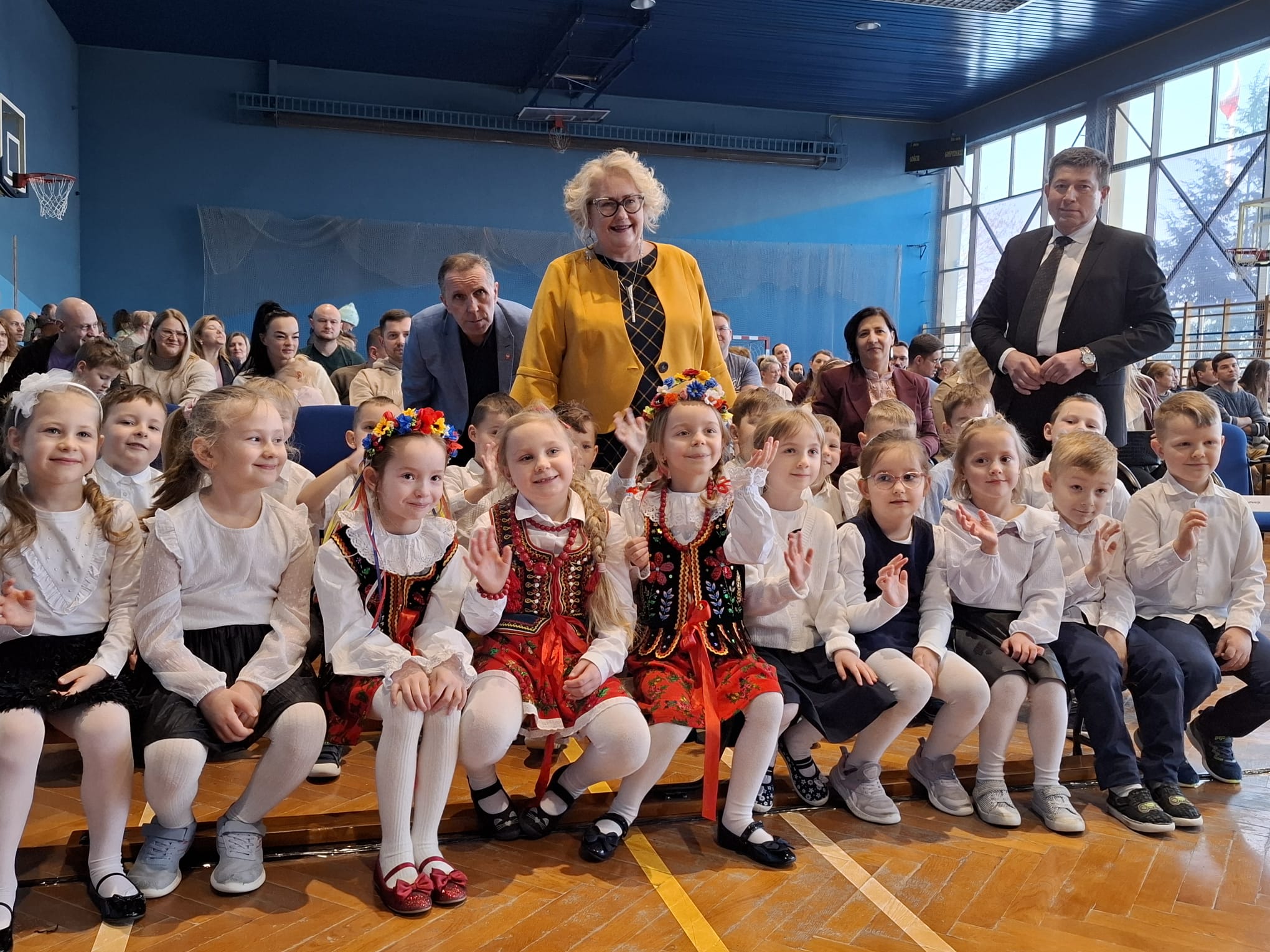 Widownia, która wypełniła inwałdzką salę gimnastycznż, kilkakrotnie gromkimi barwami nagradzała artystów. Dziękowali im też w swoich wypowiedziach po spektaklu burmistrz Andrychowa Beata Smolec i dyrektor ZSS w Inwałdzie Michał Kołodziejczyk. Wśród widzów znaleźli się też: Dyrektor Gminnego Zarządu Oświaty Dorota Szemik, sołtys Inwałdu Grażyna Stuglik-Nizio i radny Rady Miejskiej w Andrychowie Zbigniew Rzadek.