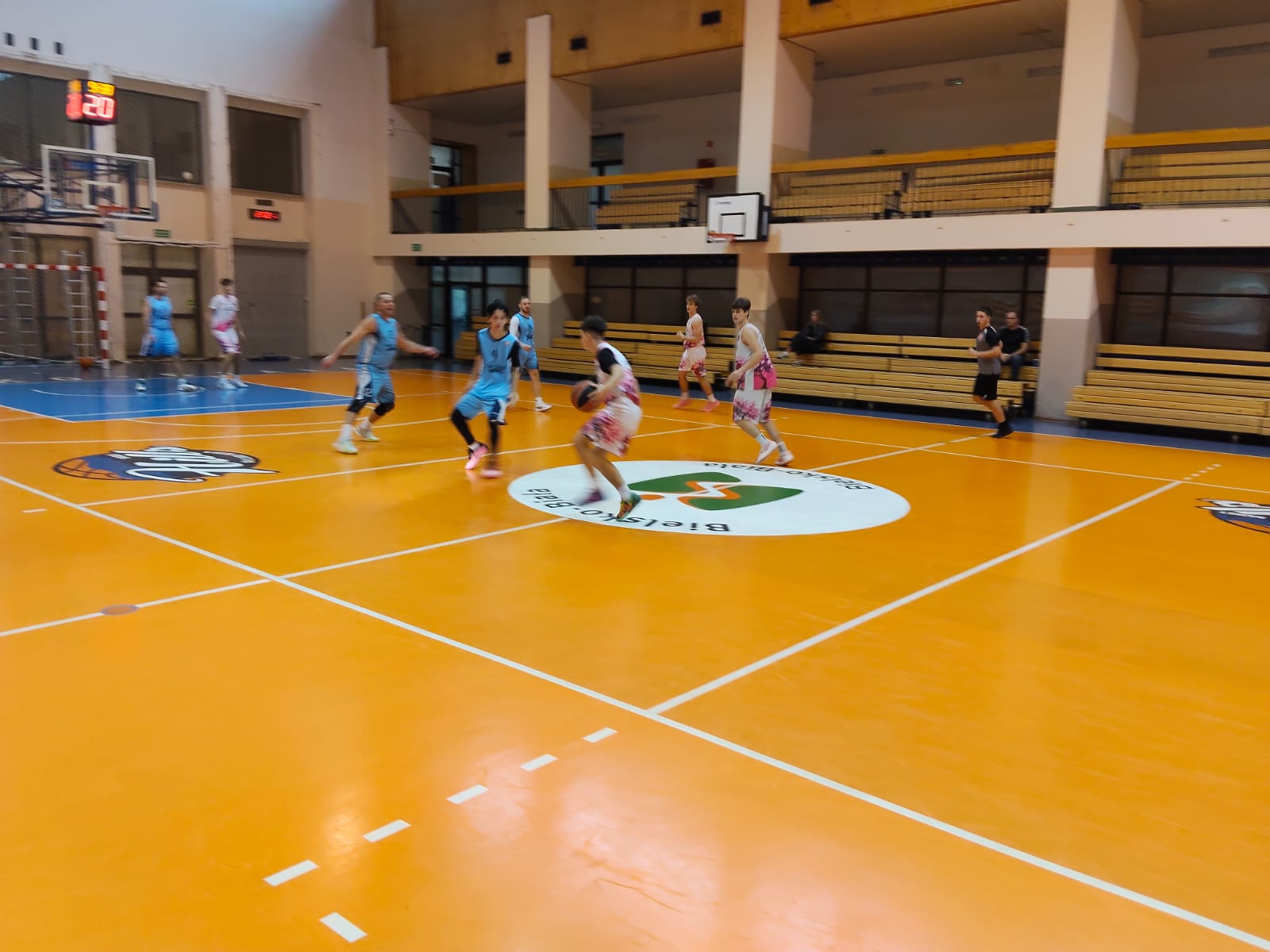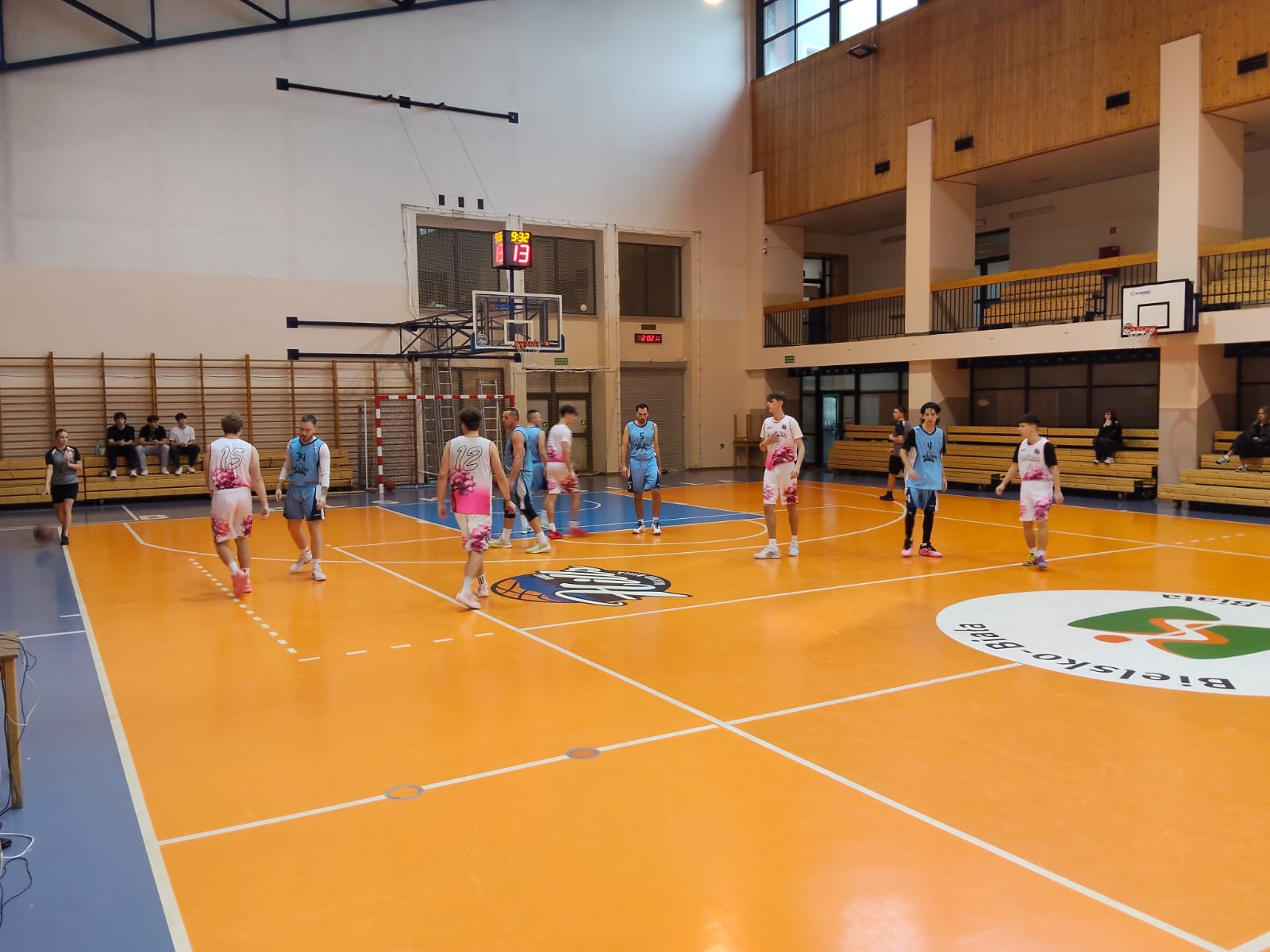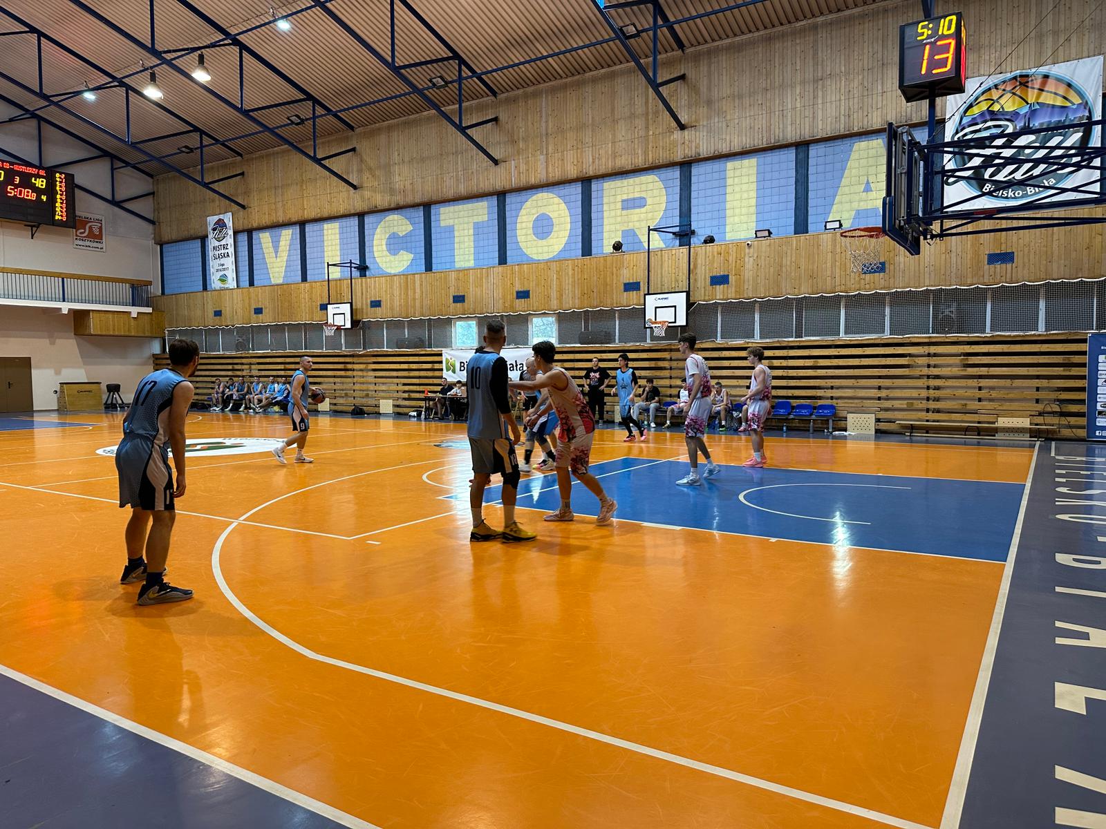 Andrychowianie – co zdarza się bardzo rzadko – do spotkania z bielszczanami przystąpili w pełnym, jedenastoosobowym składzie. Co istotne, wszyscy zawodnicy spędzili na parkiecie sporo minut, udowadniając, że każdy stanowi wartościowe ogniwo zespołu. To Hustlerzy zaczęli zawody od prowadzenia 5:2, ale potem przestali trafiać i w połowie pierwszej odsłony był remis 7:7, a chwilę później bielszczanie wygrywali już 18:8. Dopiero wówczas dwukrotnie za trzy punkty przymierzył Patryk Maryon i andrychowianie po 10 minutach przegrywali już tylko 14:18.